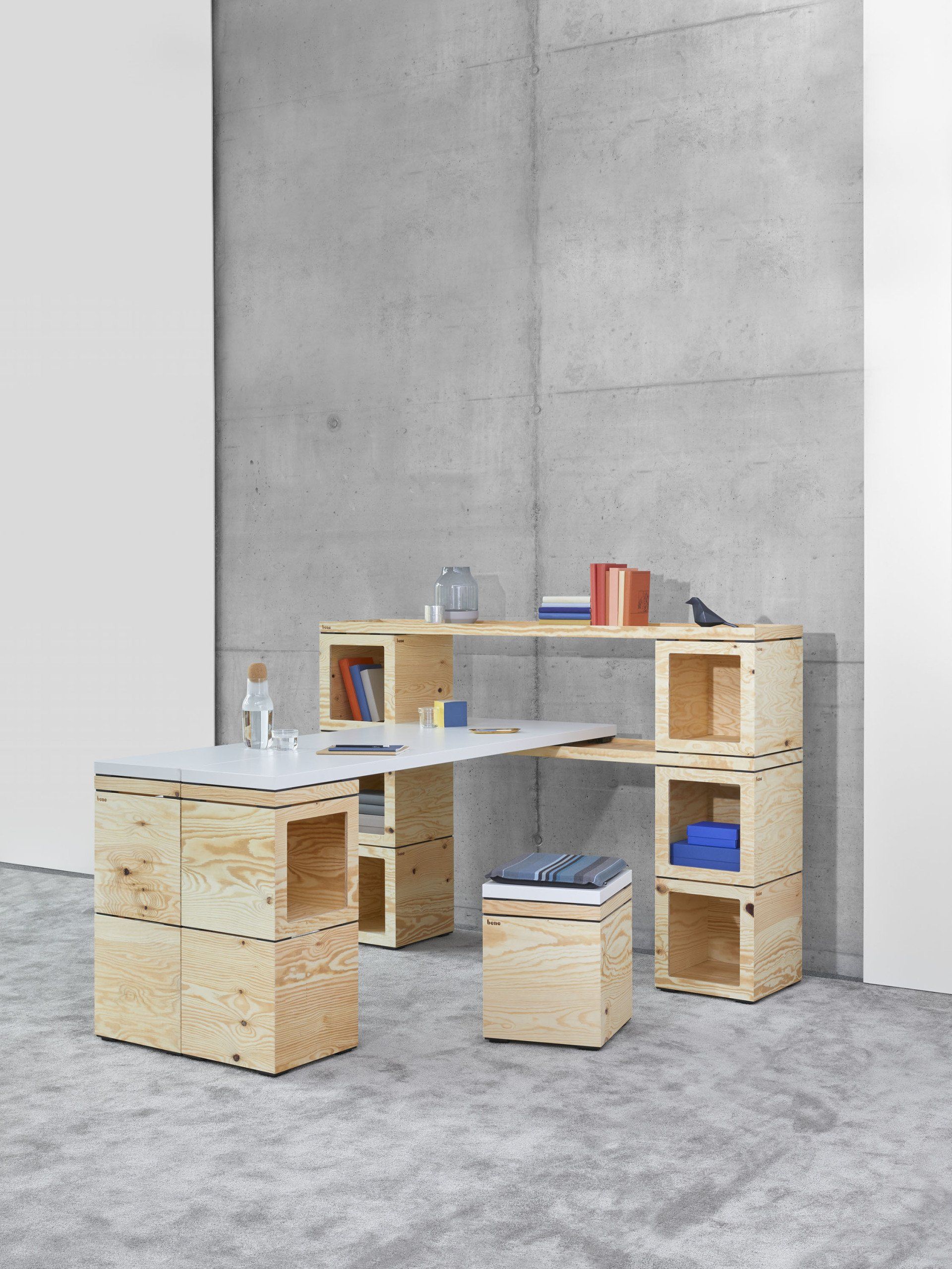 sondern ein flexibler Baustein um Funktionen im Raum darzustellen. Ein Stehtisch im Workshop, ein Arbeitstisch für das Home Office oder ein Regal für das Ladengeschäft.