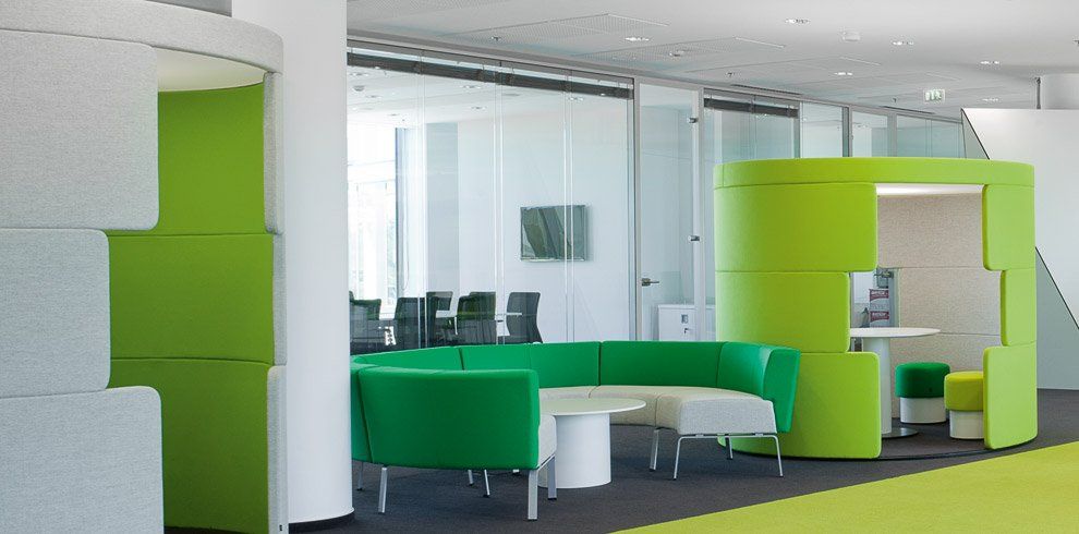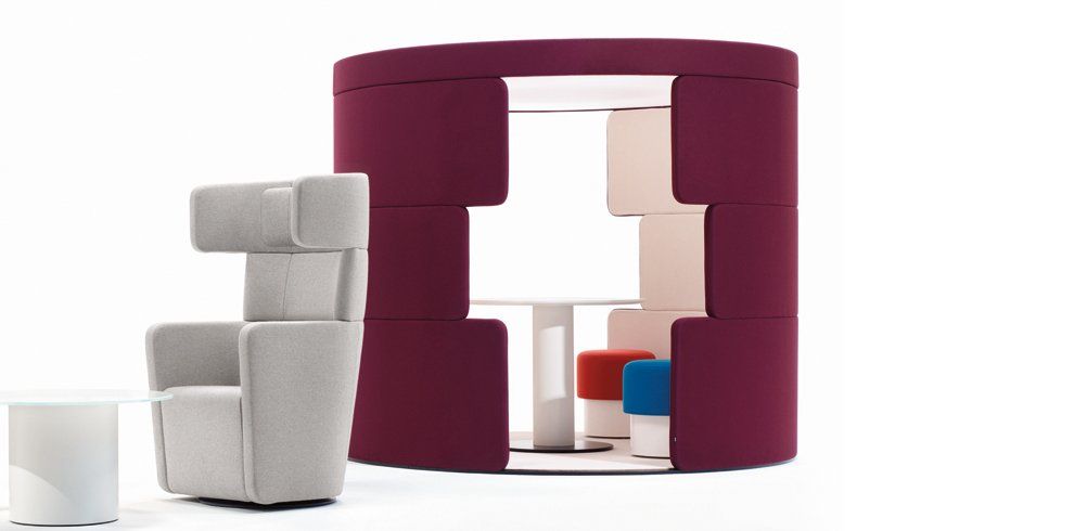 Durch die prägnante Form wird die Toguna zu einem markanten Zeichen in jedem Büro. Das Raum-im-Raum-Element fordert zur Bewegung im Raum auf und ist Symbol für das Durchbrechen starrer Strukturen. Das kreisrunde oder orthogonale, akustisch abgeschirmte, halb offene Raum-im-Raum-Element eignet sich ideal für Brainstormings oder kurze Meetings.
